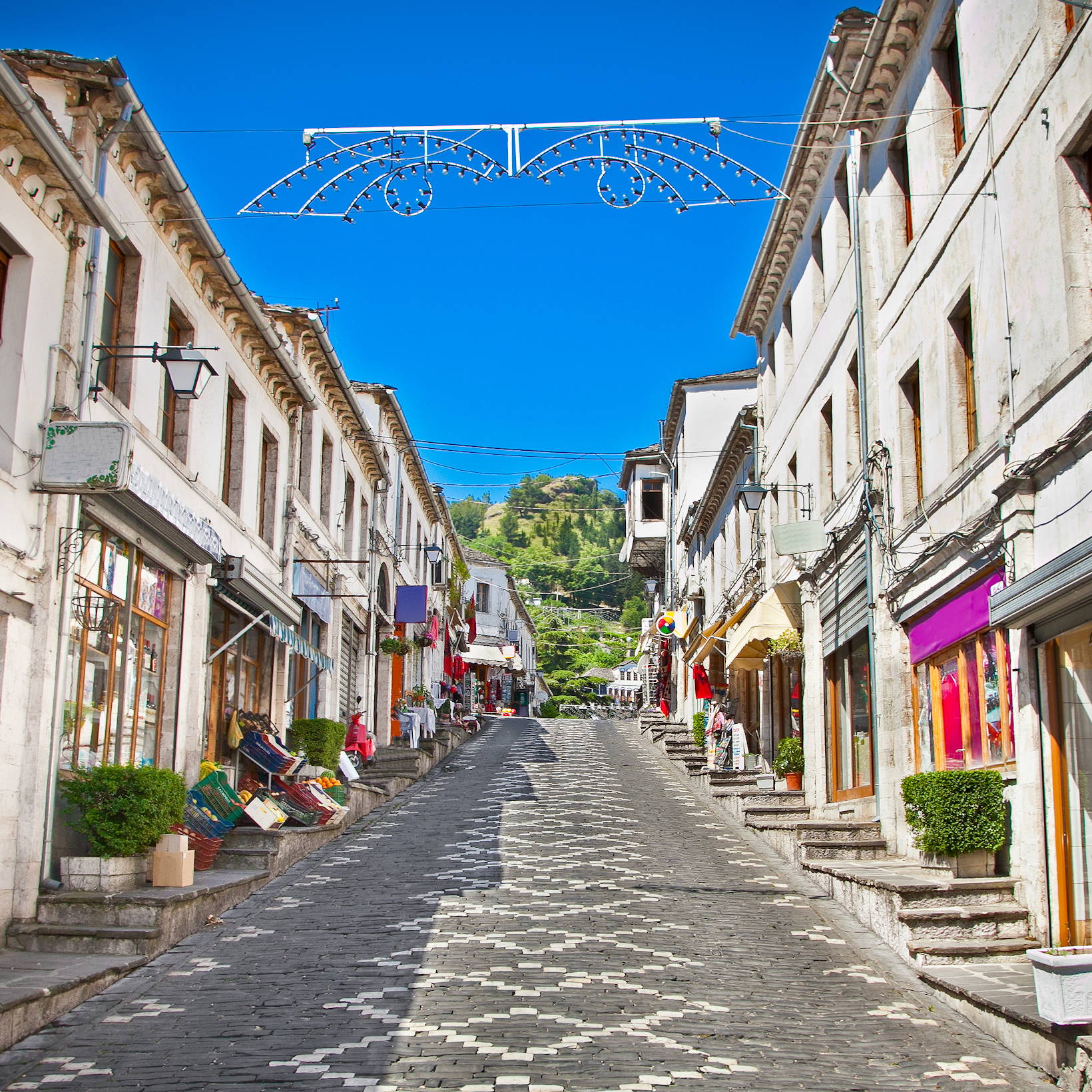 U stóp zamku rozciąga się brukowany Stary Bazar z drewnianymi straganami – jedno z najlepszych miejsc w kraju na zakup lokalnego rękodzieła. Warto zwrócić uwagę zwłaszcza na tradycyjne wyroby z mosiądzu: kunsztownie zdobione tace, dzbanki czy talerze. Nie sposób pominąć także tekstyliów – ręcznie haftowane obrusy, serwety oraz wełniane dywany z tradycyjnymi wzorami to jedne z najbardziej charakterystycznych pamiątek z Albanii.