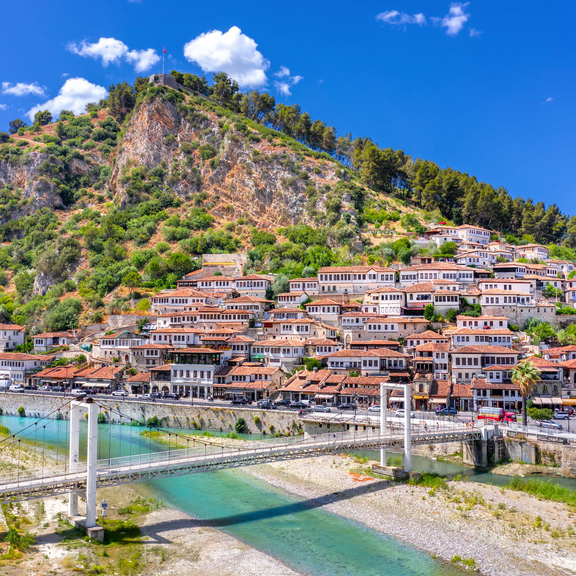 Berat to jedno z najlepiej zachowanych miast osmańskich na Bałkanach i od 2008 roku widnieje na liście Światowego Dziedzictwa UNESCO. Charakterystyczne białe domy z ciemnymi oknami pną się po wzgórzu ku średniowiecznej twierdzy na samym szczycie – to właśnie ten widok przyniósł miastu przydomek „Miasto Tysiąca Okien”.