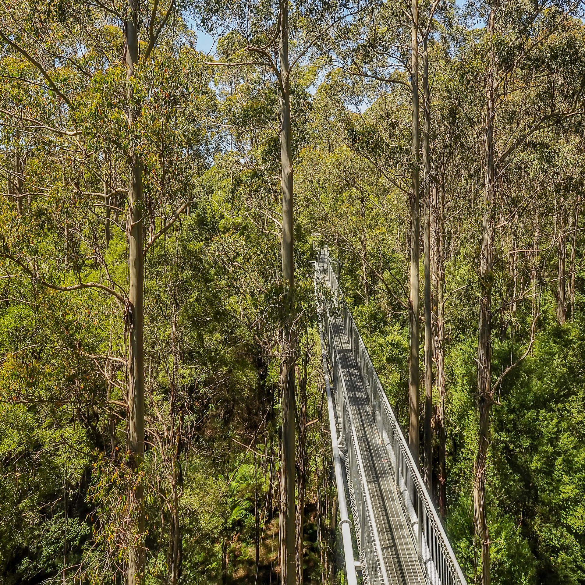 Stalowa kładka o długości 620 m wznosi się do 40 m nad ziemią w Parku Narodowym Walpole-Nornalup. Gwiazdami są tu eukaliptusy tingle – endemiczne drzewa o czerwonej korze, z których niektóre mają ponad 400 lat. Kto chce jeszcze głębszego kontaktu z lasem, może przejść uzupełniający Ancient Empire Walk – naziemny szlak prowadzący wśród wypalonych od wewnątrz pni gigantycznych drzew, na tyle dużych, że można przez nie przejść na piechotę.