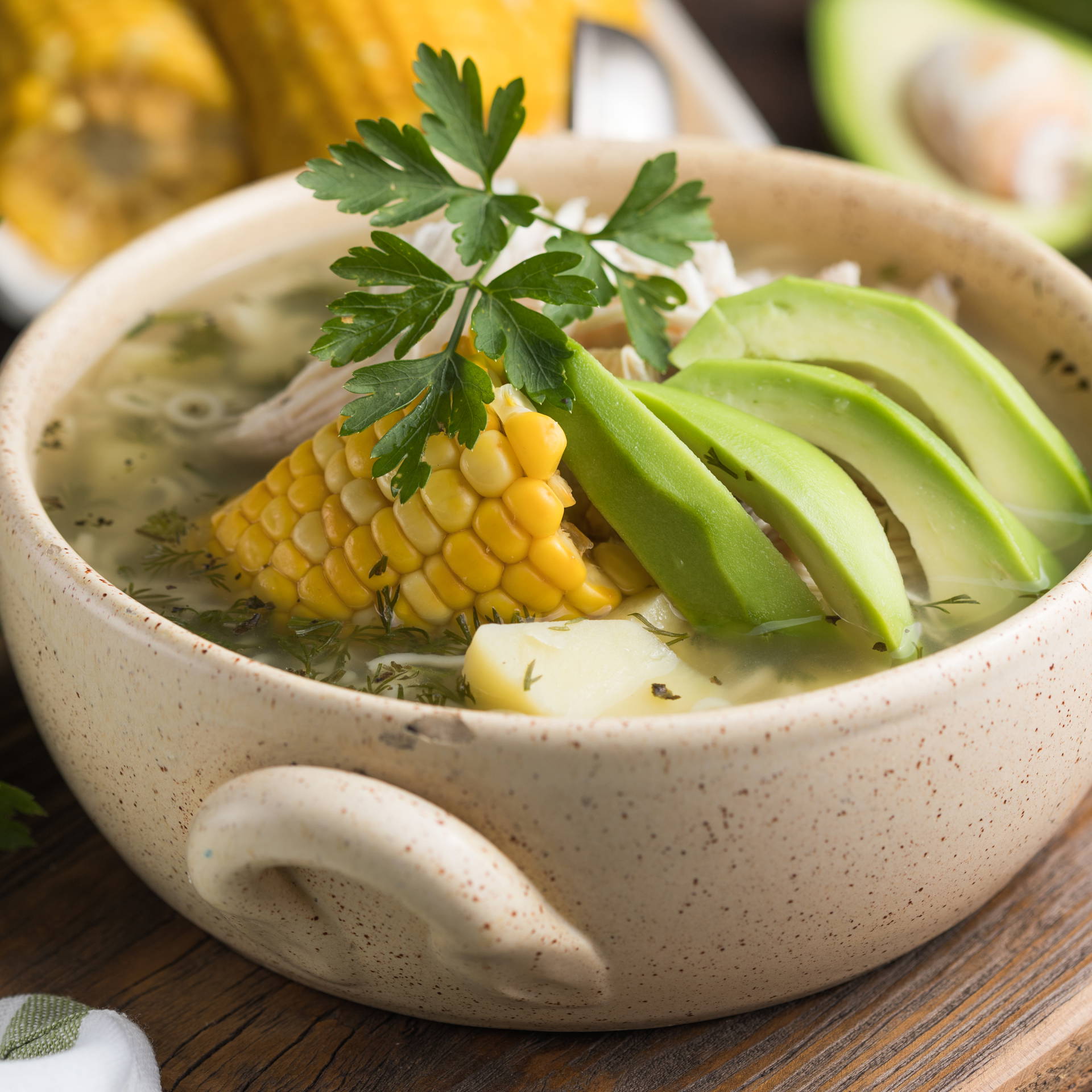 Ajiaco to tradycyjna kolumbijska zupa, szczególnie popularna w regionie Bogoty i Andów Środkowych. Sycące, jednogarnkowe danie przygotowywane jest na bazie kurczaka, z dodatkiem trzech rodzajów ziemniaków, które nadają zupie kremowej konsystencji, oraz kukurydzy i natki kolendry. Często podaje się je także z kapustą, ryżem i śmietaną. Pokrojone na plasterki i przyprószone pieprzem awokado należy dodać do miski dopiero tuż przed jedzeniem!