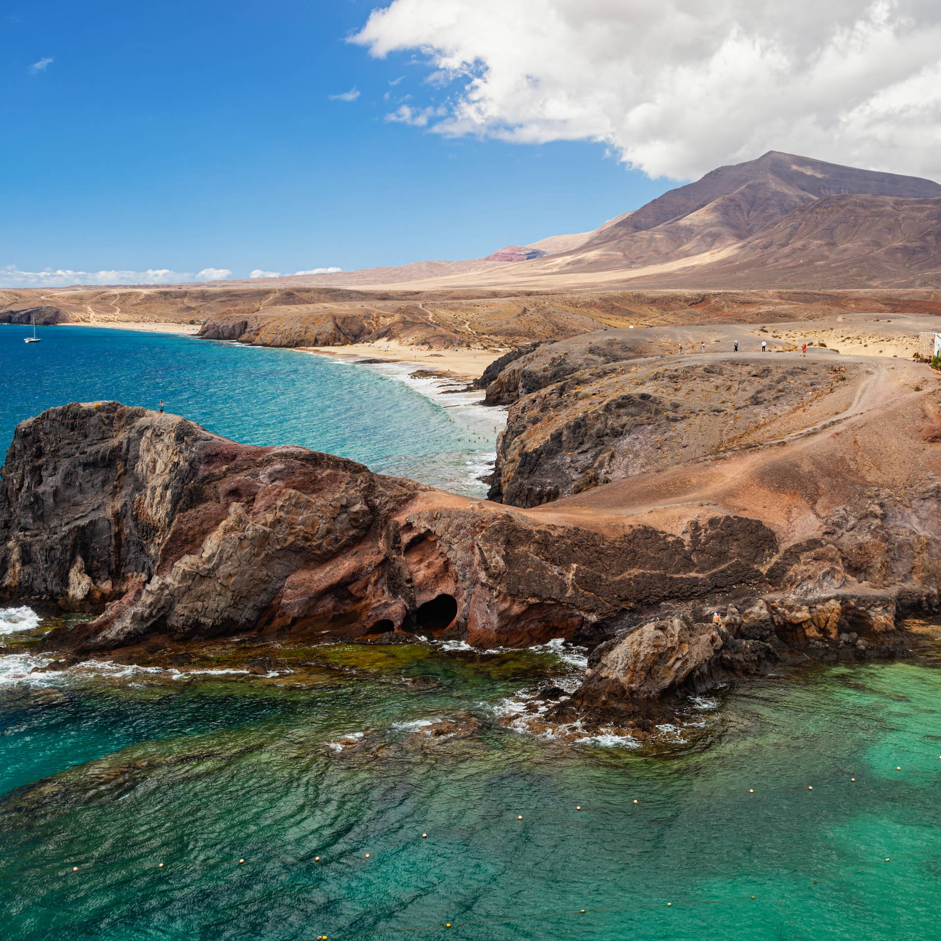 Złoty piasek kontrastuje z czarnymi i czerwonymi skałami wulkanicznymi – efekt typowy dla Lanzarote, wyspy ukształtowanej przez erupcje wulkaniczne w XVIII wieku. Woda ma intensywny turkusowy kolor i jest krystalicznie przejrzysta – idealna do snorkelingu przy skałach. Klify chronią zatokę przed wiatrem, dzięki czemu woda jest zwykle spokojna, nawet gdy na otwartym oceanie panują fale.