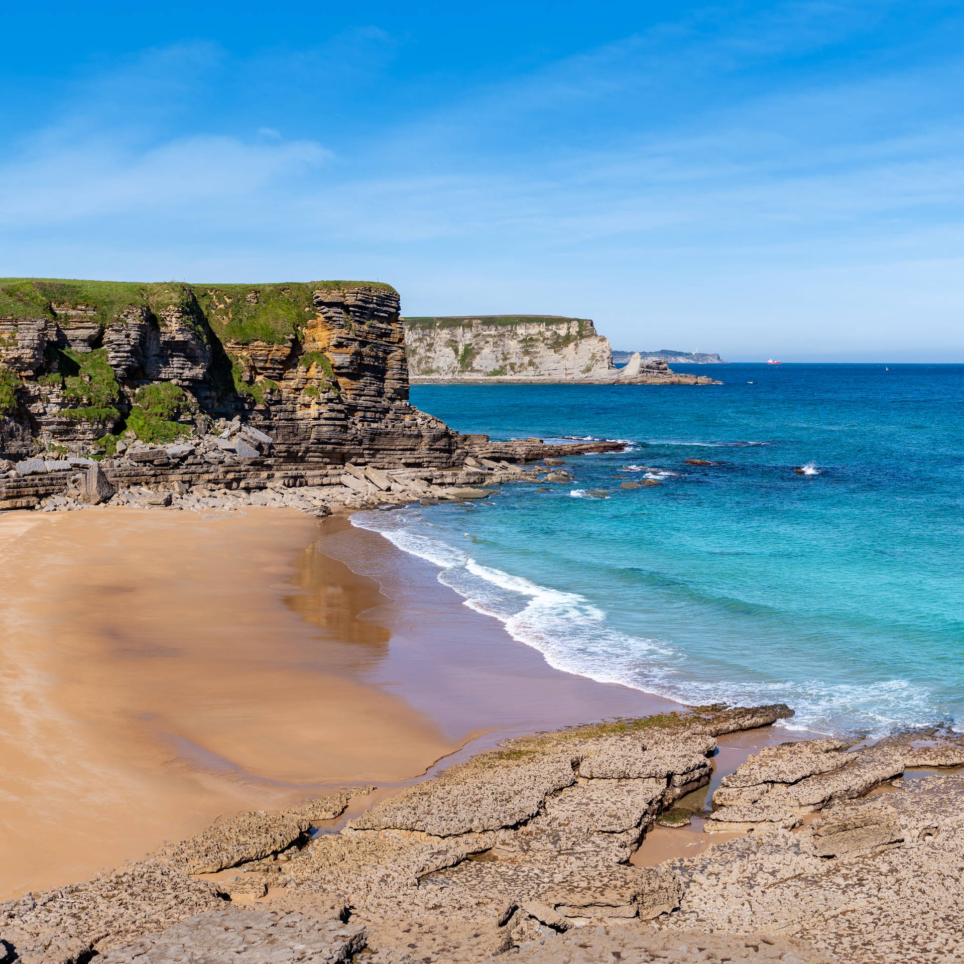 Playa de Langre znajduje się w gminie Ribamontán al Mar w Kantabrii, około 15 km na wschód od Santander. To jedna z najbardziej spektakularnych plaż północnej Hiszpanii – złoty piasek, wysokie zielone klify i dramatyczne fale Zatoki Biskajskiej.
