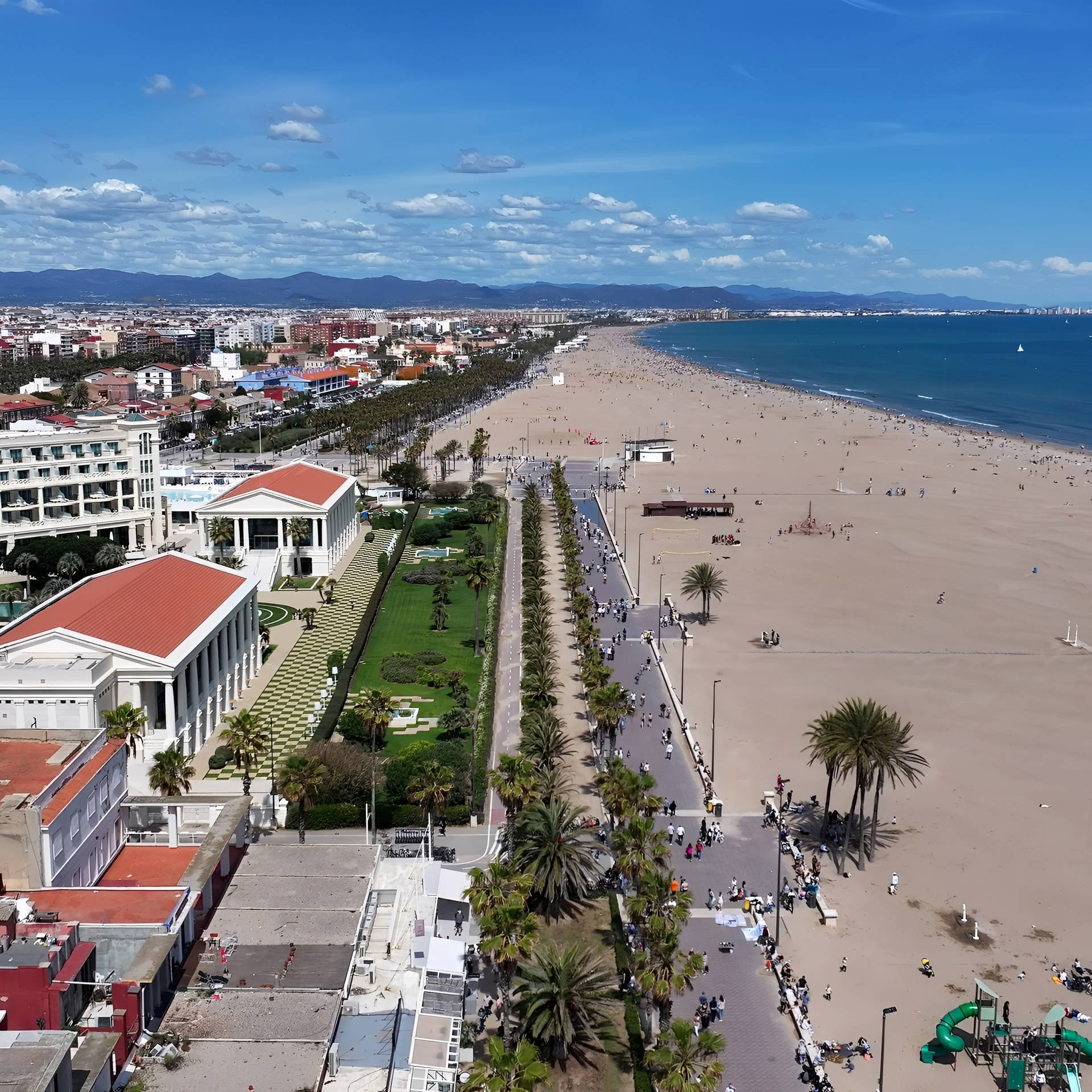 Las Arenas to najsłynniejsza miejska plaża Walencji, rozciągająca się na długości 1,2 km tuż przy dzielnicy Poblats Marítims. Nazwa pochodzi od historycznego spa Balneario Las Arenas, które otwarto tu w 1898 roku dla zamożnych hiszpańskich rodzin – dziś budynek jest luksusowym hotelem, ale nadal można podziwiać jego fasadę w stylu Belle Époque.