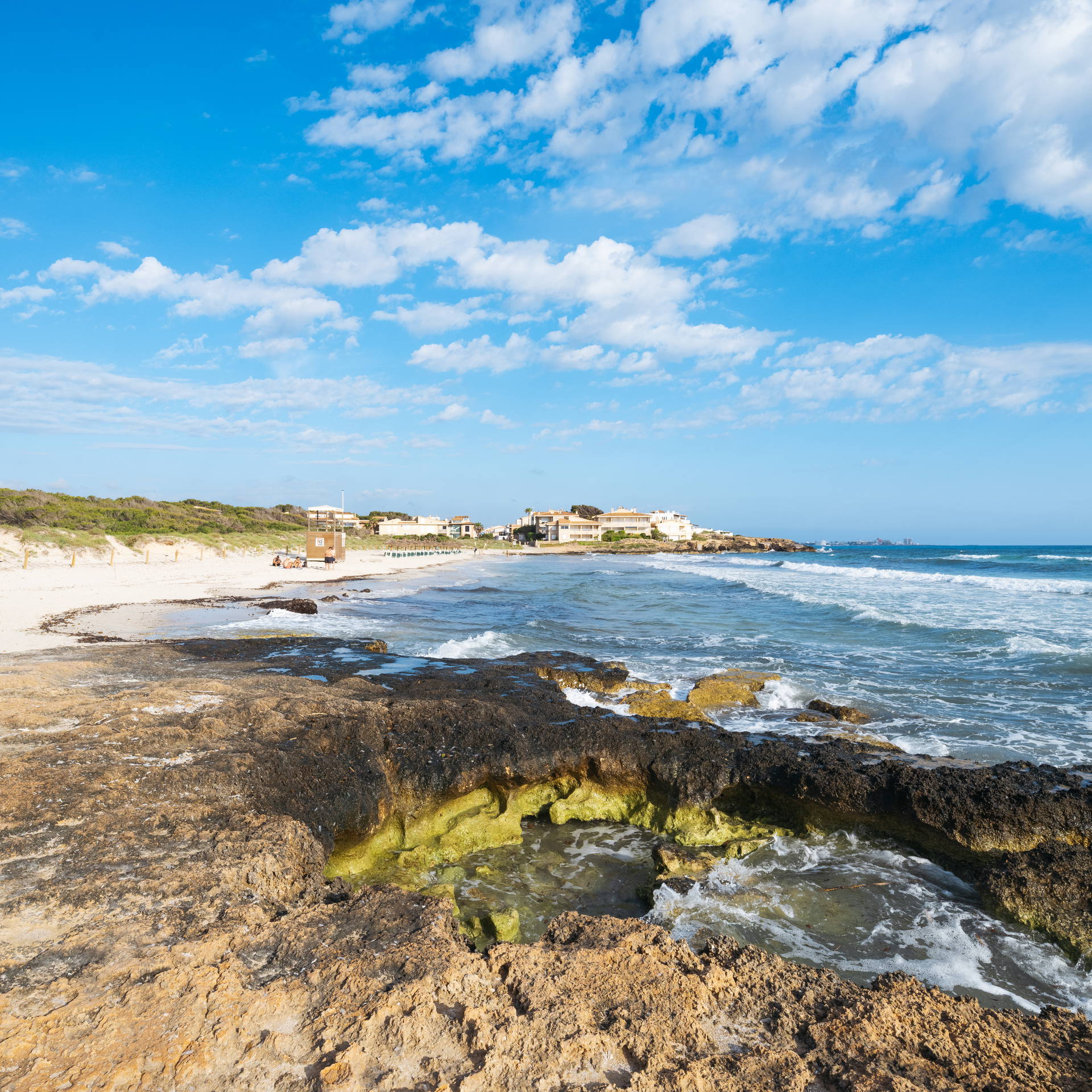 Es Trenc to 2,5-kilometrowa plaża położona na południu Majorki, około 10 km od miasteczka Campos. To ostatnia duża, niezabudowana plaża na wyspie – chroniona jako obszar naturalny, bez hoteli i apartamentowców przy brzegu. Zamiast betonowych bloków za plażą ciągną się dziewicze wydmy porośnięte roślinnością, a w głębi znajdują się saliny, gdzie w sezonie można zobaczyć flamingi.