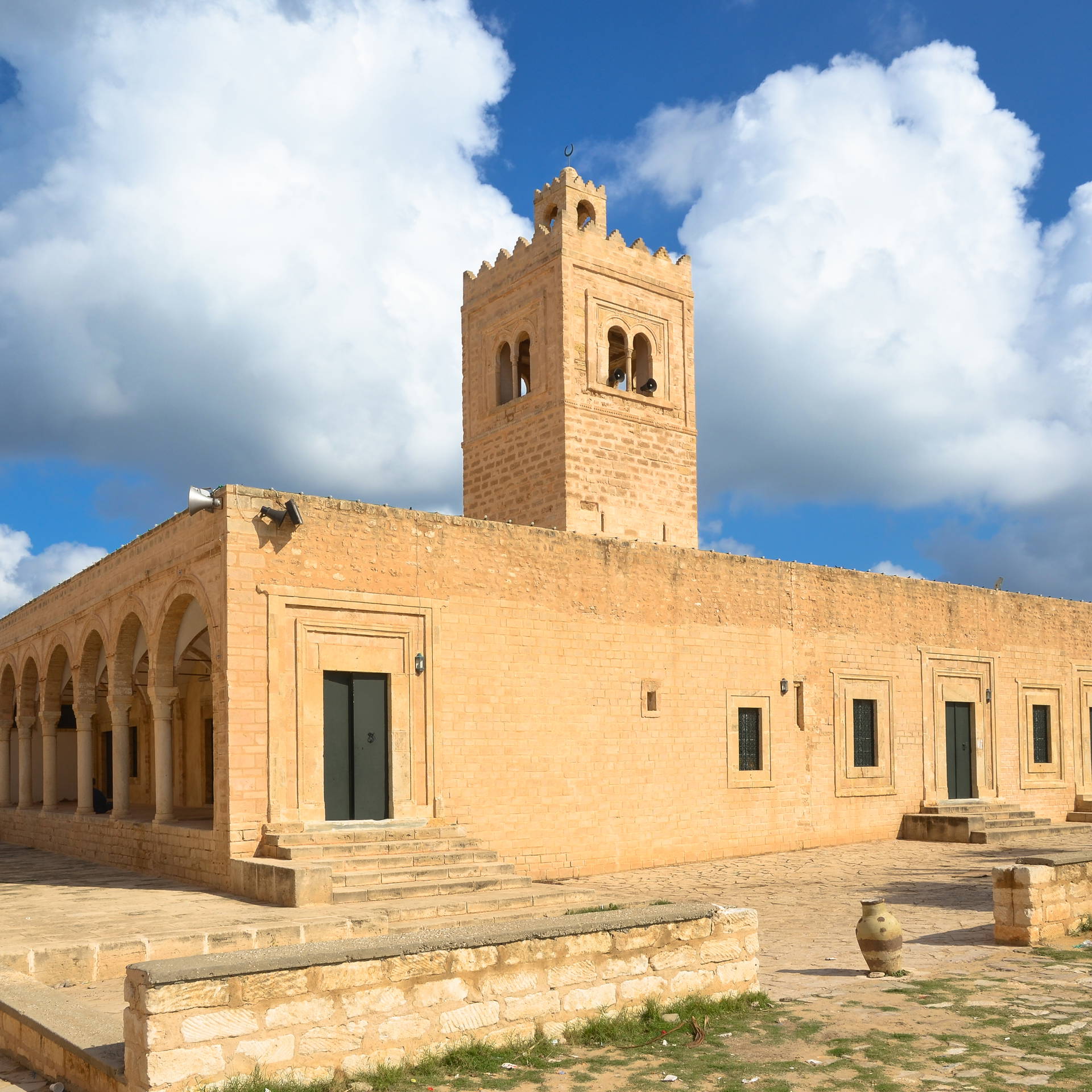 Z Ribatem Harthema sąsiaduje także Wielki Meczet – z pozoru surowa, przypominająca fortecę, kamienna budowla zwieńczona jednym minaretem na planie kwadratu. Powstał w okresie Aghlabidów jako niewielkie oratorium, a następnie był stopniowo rozbudowywany przez dynastie Zirydów i Hafsydów. W architekturze obiektu połączono lokalne północnoafrykańskie techniki budowlane z elementami śródziemnomorskimi. Swój obecny wygląd meczet osiągnął dopiero w XVIII wieku.