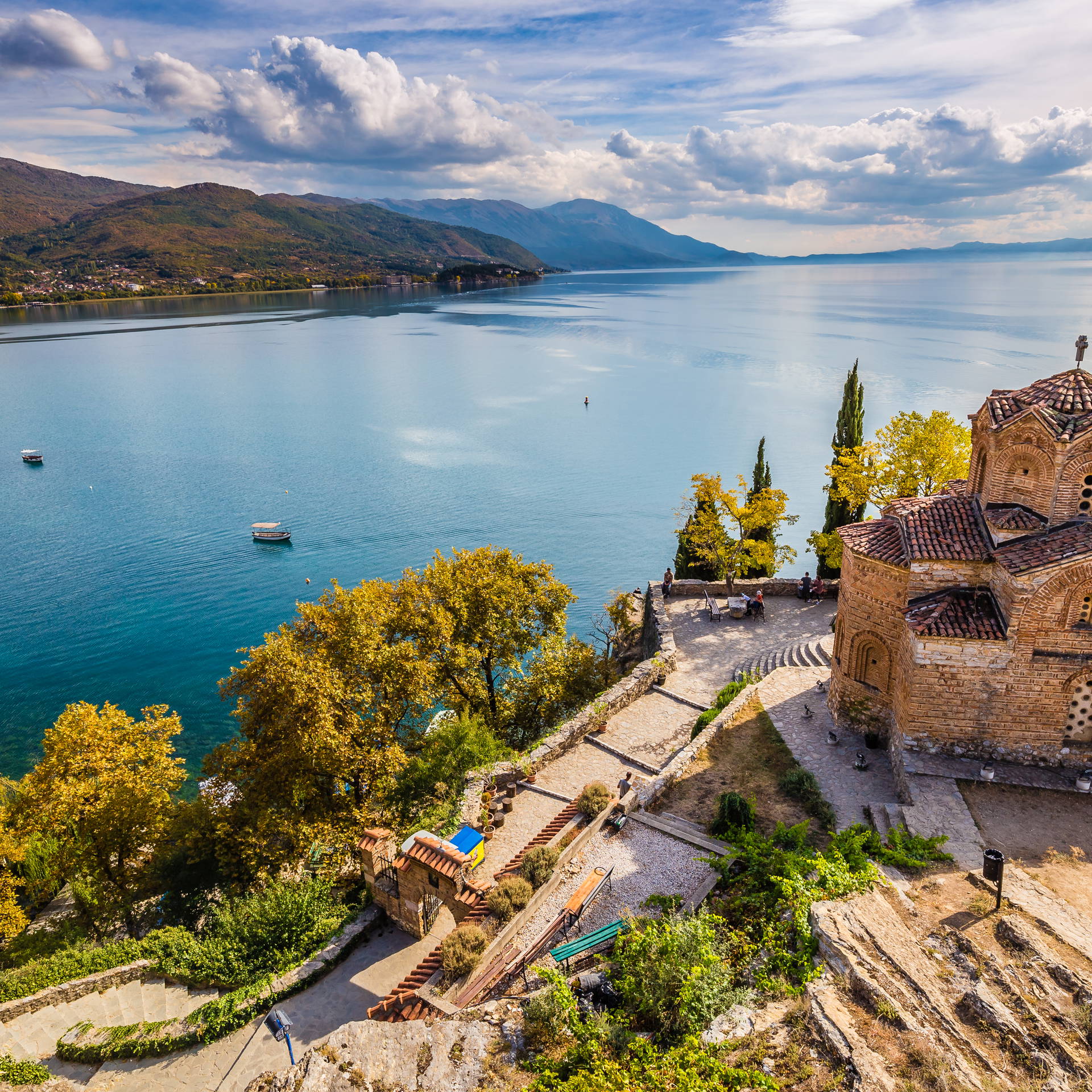 Malowniczo położona cerkiew św. Jana Teologa w Kaneo to zdecydowanie najpopularniejszy i najczęściej fotografowany punkt widokowy w Ochrydzie. Cerkiew znajduje się na skalistym wzgórzu nad plażą Kaneo, w starej części miasta, i oferuje najpiękniejszy widok na Jezioro Ochrydzkie – pocztówkowy kadr, który stał się wizytówką całego miasta.