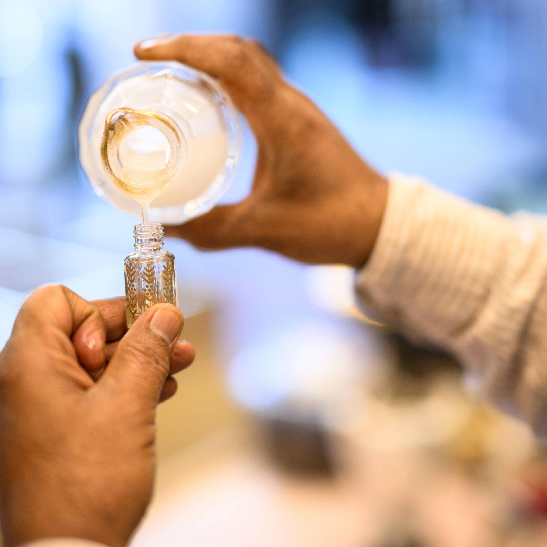 Filozofia tworzenia arabskich i francuskich perfum jest zupełnie inna, co przekłada się na doznania, które towarzyszą ich używaniu. Jedną z kluczowych cech perfum arabskich jest wykorzystanie bazy olejkowej zamiast alkoholowej. Wynika to z zasad islamu, który zakazuje spożywania alkoholu, a w bardziej radykalnych interpretacjach – także stosowania go w kosmetykach. Popularne w Europie zapachy powstają na bazie alkoholu, przez co są świeże, lekkie, często minimalistyczne. Sekret arabskich perfum kryje się natomiast w ich wielowymiarowości – dzięki wykorzystaniu olejków mogą długo rozwijać się na skórze. Ich nakładanie staje się zmysłowym doznaniem, bo zamiast rozpylać pachnącą mgiełkę, pachnidła wciera się w skórę.