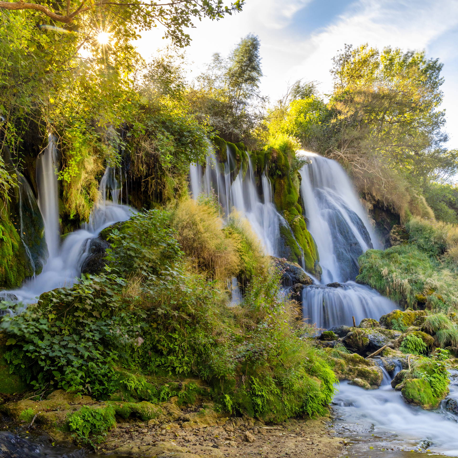Wodospady ukryte są w gąszczu zieleni; ich strome ściany pokrywają mchy i porosty charakterystyczne dla skał tufowych, a wśród dominujących gatunków drzew można znaleźć figowce, topole i wierzby. Bliskość wody i naturalny charakter terenu sprzyjają obecności licznej drobnej fauny. Spacerując wzdłuż brzegów rzeki Trebižat, w przejrzystej wodzie można zauważyć ryby, ukrywające się wśród roślin żaby oraz liczne ważki i motyle. Z dala od zatłoczonej przez turystów przestrzeni, w miejscach, które zachowały swój pierwotny charakter, kryją się jelenie i dziki. Warto zejść z głównej ścieżki nie tylko po to, by zobaczyć je z oddali, ale także podziwiać groty i naturalne formacje skalne wzdłuż brzegów Trebižat.