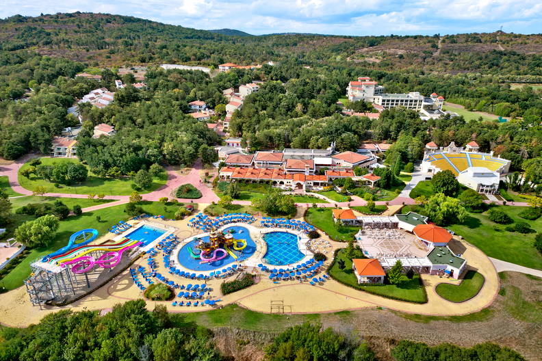 - 3 baseny zewnętrzne z brodzikami dla dzieci, aquapark ze zjeżdżalniami (czynny w okresie 01.06-15.09).