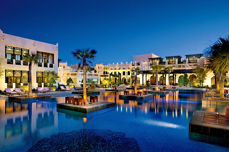 Hotel w formie wioski wakacyjnej, zlokalizowany na rozległym terenie w 1 i 2 kondygnacyjnych budynkach. Całodobowa recepcja z lobby, winda, wypożyczalnia samochodów, sklep z pamiątkami, salon fryzjerski, centrum biznesowe i konferencyjne, punkt ksero, usługi pralnicze, usługa codziennego sprzątania, budzenie na zamówienie, punkt wymiany walut, bankomat, przechowalnia bagażu, usługa konsjerża. Ponadto na Gości czekają restauracje i bary (płatne): Al Liwan (dania kuchni włoskiej, arabskiej i międzynarodowej oraz owoce morza; wieczory tematyczne; czynna sobota-czwartek), Parisa z pieknym widokiem na zatokę (dania kuchni perskiej), restauracja/bar Iris Doha, bar El Cedro (z cygarami i drinkami), kawiarnia Al Jalsa, kawiarnia/bar przy basenie Al Seef Poolside Cafe&Bar (czynny w zalezności od pogody; 10:00-20:00), bar na dachu Dahab z zapierajacym dech w piersiach widokiem na Morze Arabskie (dania kuchni międzynarodowej, shisha). W hotelu znajdują sie 2 rozległe baseny o nieregularnych kształtach (w tym 1 basen typu infinity). Leżaki i parasole przy basenie dostępne sa bezpłatnie.