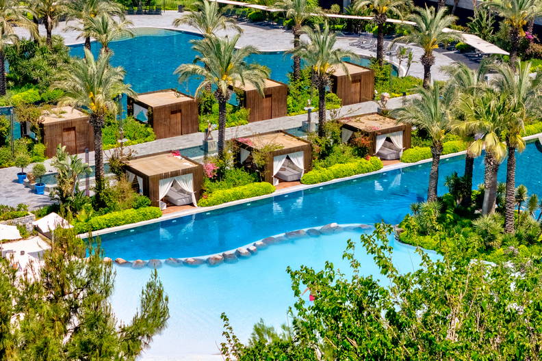 - Restauracje: restauracja główna, 4 restauracje a’la carte (turecka, włoska, azjatycka, owoce morza; wymagana wcześniejsza rezerwacja), 10 barów, w tym bar przy basenie oraz bar na plaży.