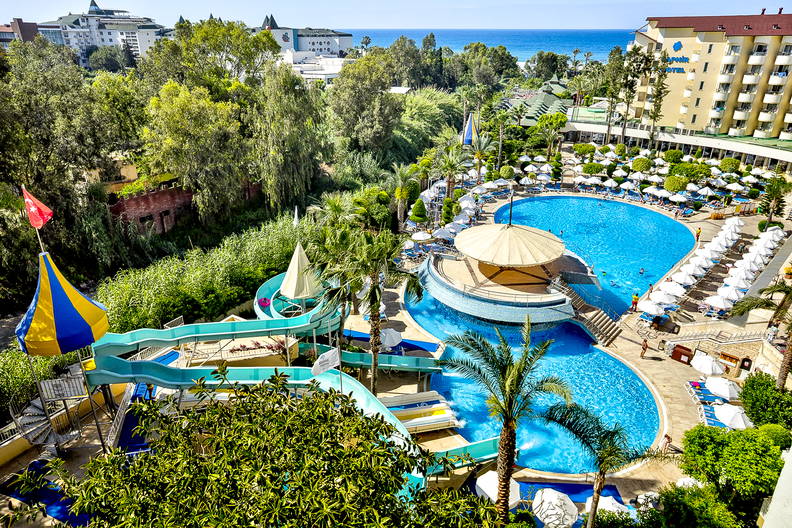 Hotel położony przy plaży w spokojnej okolicy Alanyi oferuje doskonałe warunki do relaksu i rozrywki. Przestronna infrastruktura sprzyja komfortowemu wypoczynkowi, zwłaszcza dla rodzin z dziećmi. Przyjazna atmosfera oraz bliskość lokalnych atrakcji czynią go idealnym miejscem dla osób szukających zarówno spokoju, jak i aktywnego wypoczynku.